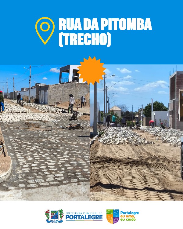 Um trecho da Rua da Pitomba está sendo pavimentado com sobras de convênio do Ministério das Cidades, totalizando quase R$ 67 mil em investimentos. Serão 700 m² de pavimento com calçadas acessíveis.