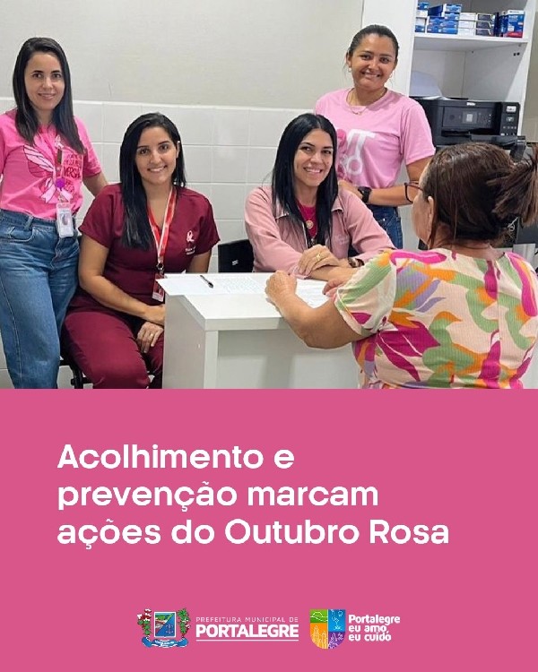 A Gestão Municipal de Portalegre, por meio da Secretaria de Saúde, realizou um acolhimento especial às mulheres, nesta sexta, dia 31, com orientações sobre a campanha Outubro Rosa e a importância da prevenção e do diagnóstico precoce do câncer de mama.