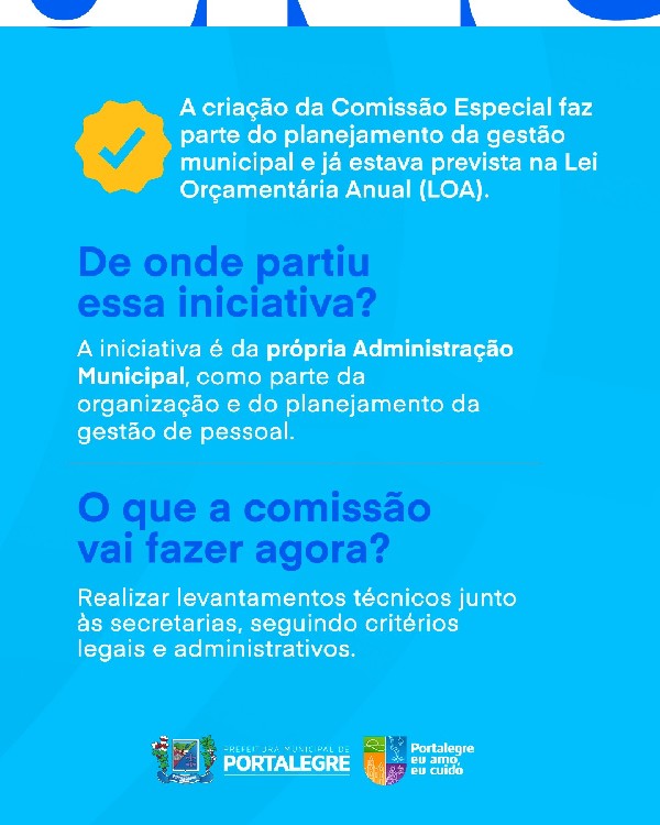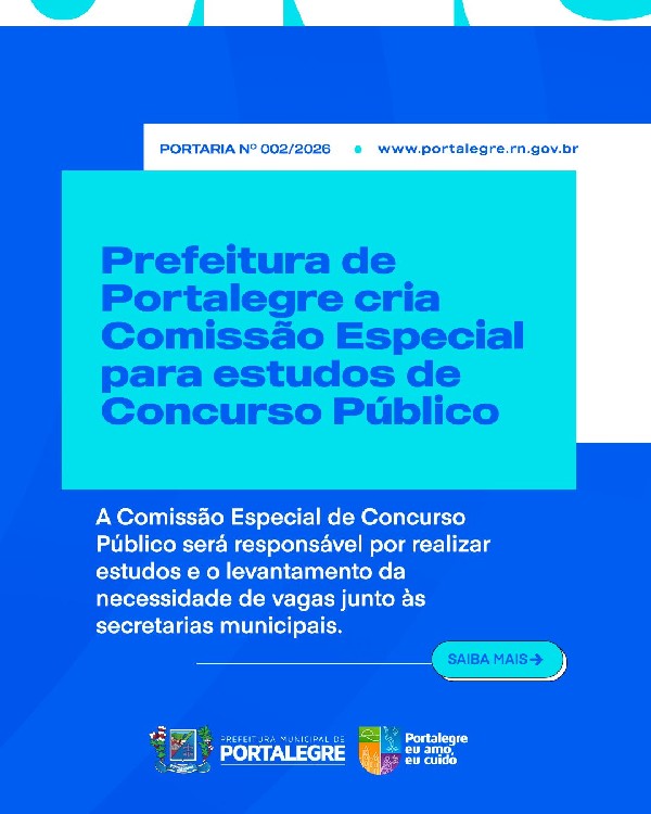 A Prefeitura de Portalegre instituiu a Comissão Especial de Concurso Público, conforme a Portaria nº 002/2026, como parte do planejamento da gestão de pessoal do município.