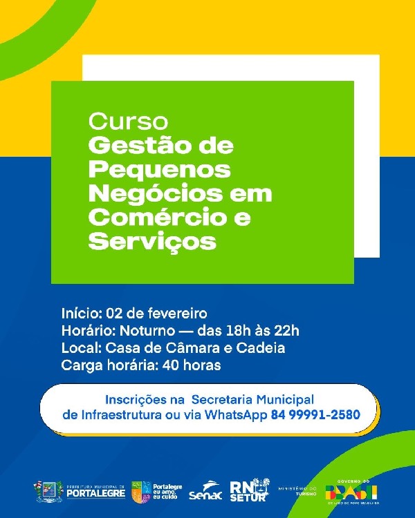 Uma excelente oportunidade para qualificação, geração de renda e fortalecimento do comércio e dos serviços locais.