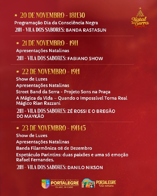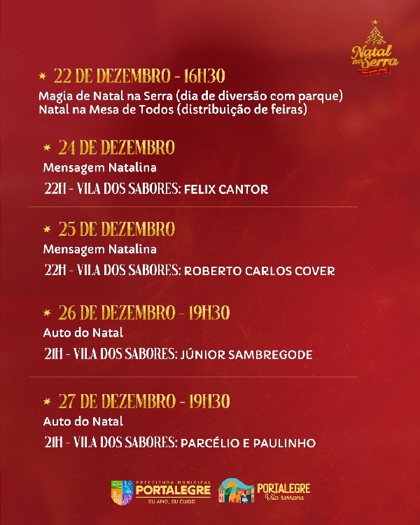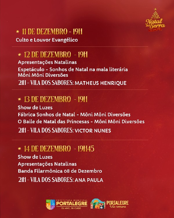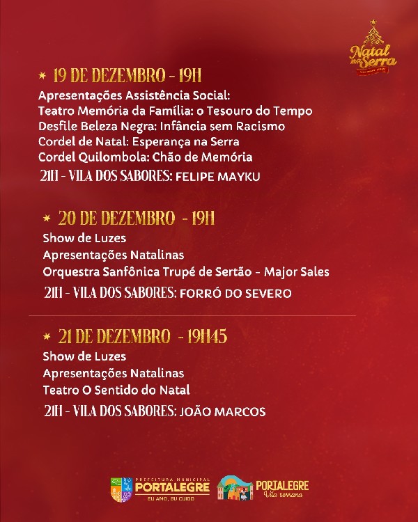 PROGRAMAÇÃO OFICIAL DO NATAL NA SERRA