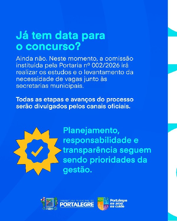 A Prefeitura de Portalegre instituiu a Comissão Especial de Concurso Público, conforme a Portaria nº 002/2026, como parte do planejamento da gestão de pessoal do município.